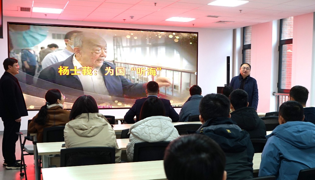 在完成支部委員補選后,全體與會黨員集體觀看了《楊士莪:為國“聽?!薄肥论E短片。該片生動展現(xiàn)了我國水聲工程學(xué)科奠基人、“時代楷模”稱號獲得者、哈爾濱工程大學(xué)楊士莪院士胸懷祖國、矢志科研,為扭轉(zhuǎn)“有海無防”局面而終生投身水聲學(xué)研究與人才培養(yǎng)的感人事跡。