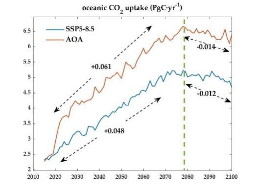 圖3. 本世紀(jì)高排放情境下全球海洋碳匯的變化