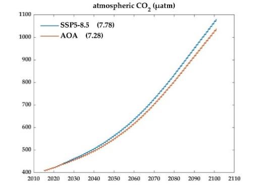 圖4. 高排放情境下全球大氣平均CO2含量在本世紀(jì)的變化