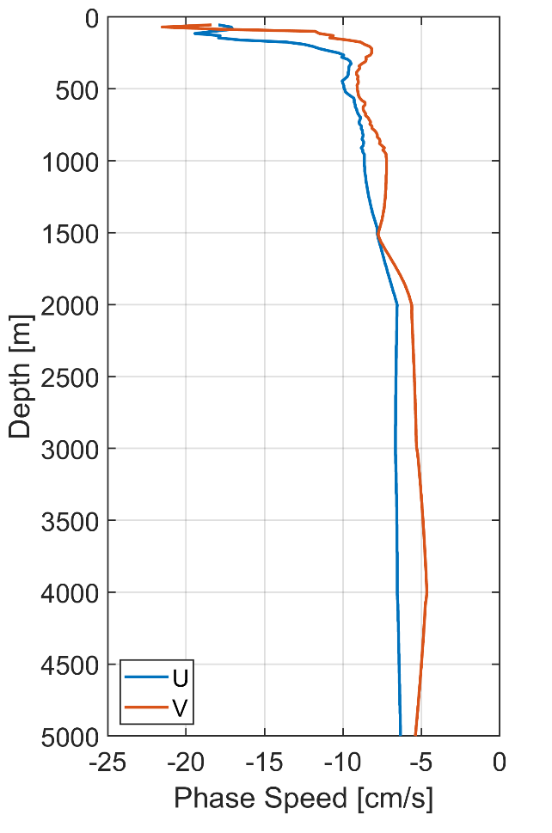 圖1基于帶通流速計(jì)算得到的90天季節(jié)內(nèi)信號(hào)緯向相速度的垂向剖線