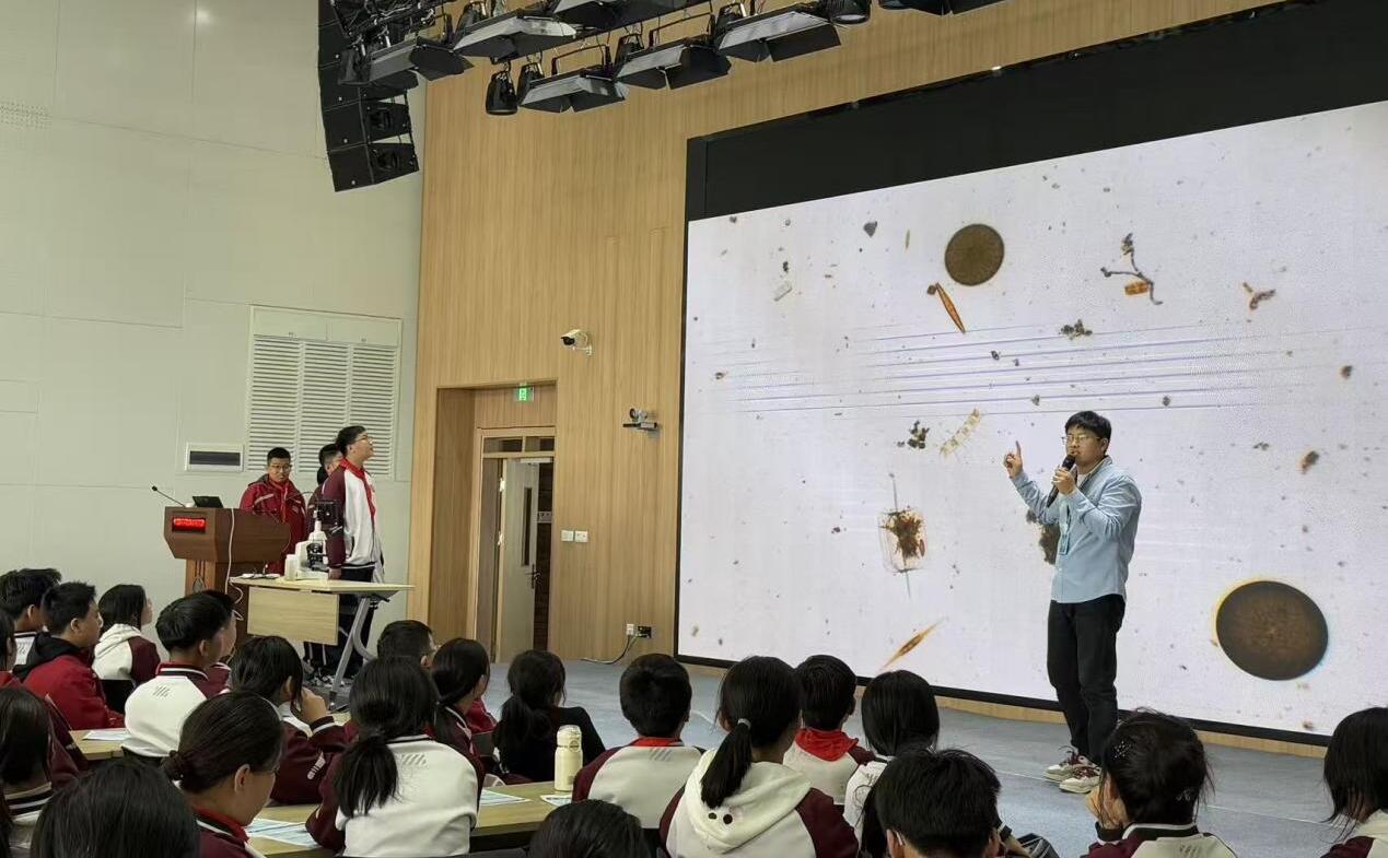 以《海水中的小精靈——海洋微藻》為主題的海洋科普報(bào)告為同學(xué)們揭示了微米級的浮游植物如何驅(qū)動龐大的海洋“碳泵”引擎,以及它們?nèi)绾巫鳛榛瘬纹鹫麄€海洋食物鏈。通過對赤潮背后所隱藏的生態(tài)危機(jī)的了解,同學(xué)們體會到了維護(hù)海洋生態(tài)平衡的緊迫性。隨后在浮游生物顯微觀察課上,同學(xué)們通過親手操作高倍顯微鏡觀察了硅藻對稱如藝術(shù)品的硅質(zhì)殼體、甲藻游動時閃爍的熒光軌跡等,真切感受到了海洋生物多樣性的宏大與瑰麗。