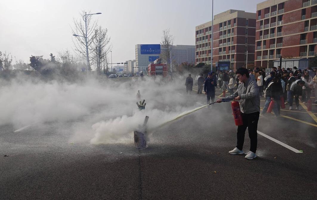 劉相林向參加培訓(xùn)的研究生普及了各類消防設(shè)備使用方法、火災(zāi)應(yīng)急逃生技巧等消防安全的基本知識,并通過近年發(fā)生的典型火災(zāi)案例,闡述了火災(zāi)的嚴(yán)重危害和消防安全的重要性,起到了警示提醒的作用。隨后,通過消防警報、門禁電梯管控等聯(lián)動措施,模擬真實火災(zāi)場景,進行疏散演練,參與人員通過消防通道快速有序撤離,并在集合點進行了滅火器實操培訓(xùn)。
