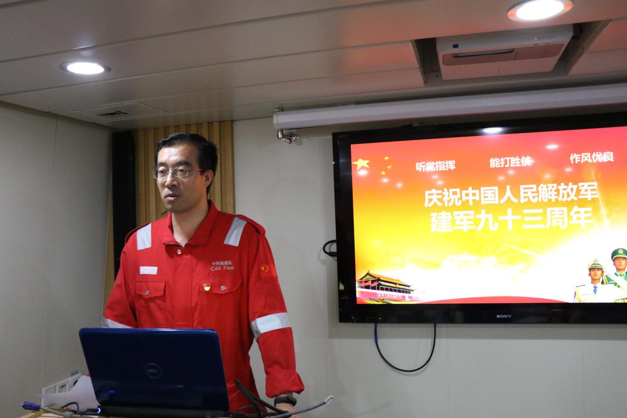8月1日是中國科學(xué)院海洋研究所建所70周年的日子,也是中國人民解放軍建軍93周年紀(jì)念日。在這個(gè)特殊的節(jié)日里,“科學(xué)”輪“海上堡壘”臨時(shí)黨支部開展主題黨日活動(dòng),臨時(shí)黨支部所有黨員及積極分子參加會(huì)議,船長(zhǎng)孫其軍和其他船隊(duì)員列席會(huì)議。會(huì)議由臨時(shí)黨支部書記宋永東同志主持。