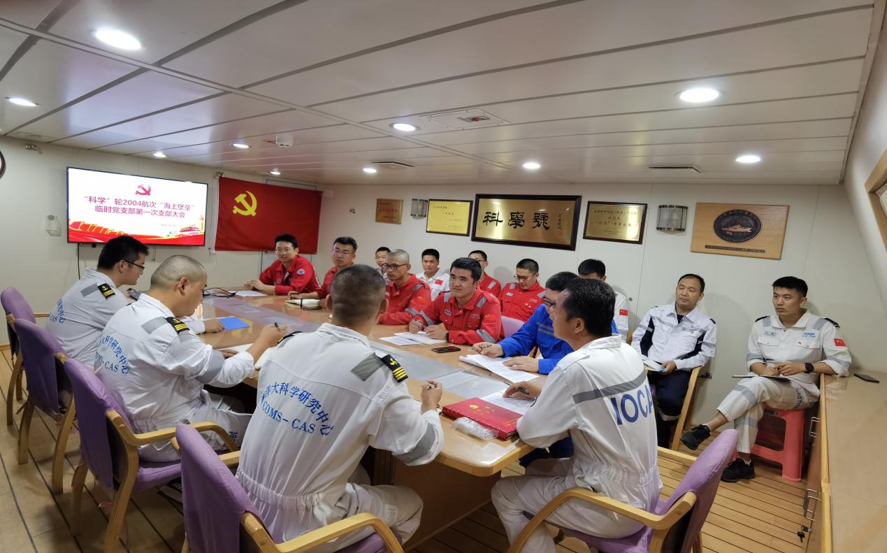 “科學”輪2004航次“海上堡壘”臨時黨支部召開第一次支部會議