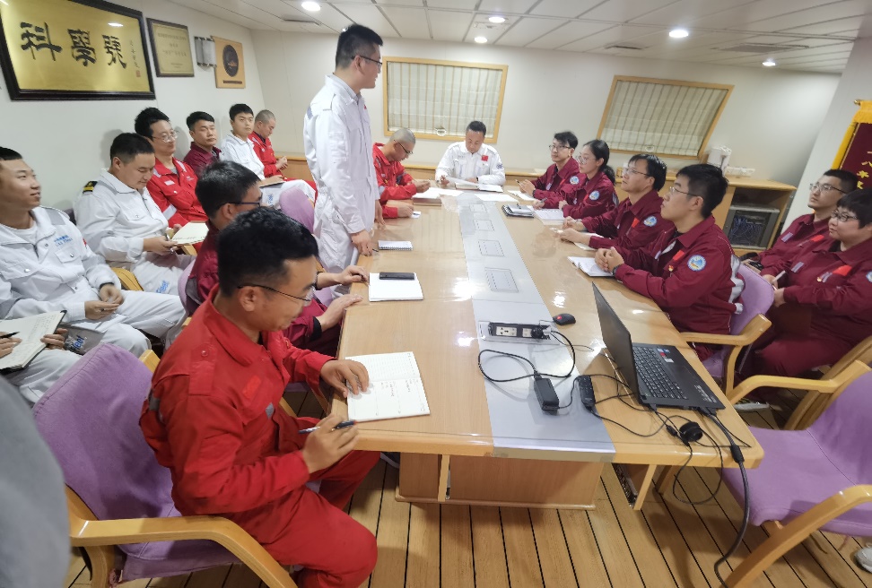 “海上堡壘”臨時(shí)黨支部在海洋所黨委的指導(dǎo)下,進(jìn)一步規(guī)范臨時(shí)支部建設(shè),嚴(yán)格落實(shí)“海上堡壘”臨時(shí)黨支部的“三聯(lián)動(dòng)+三融合”工作模式--岸船機(jī)構(gòu)聯(lián)動(dòng)、岸船人員聯(lián)動(dòng)、岸船黨建聯(lián)動(dòng);黨建業(yè)務(wù)融合、所內(nèi)所外融合、黨內(nèi)黨外融合,圍繞政治建設(shè)、組織建設(shè)、教育培訓(xùn)、強(qiáng)化表率、文化建設(shè)開展黨建學(xué)習(xí)、疫情防控、主題黨日、創(chuàng)新文化等活動(dòng)。在黨建學(xué)習(xí)方面,康中平書記提出,“耕海探洋,黨建領(lǐng)航”,黨員同志要借助學(xué)習(xí)強(qiáng)國、燈塔黨建在線等網(wǎng)絡(luò)平臺(tái)、黨建學(xué)習(xí)交流微信群,主動(dòng)學(xué)習(xí)黨政時(shí)事,緊跟黨的步伐;在疫情防控方面,“科學(xué)”輪針對(duì)新冠肺炎疫情防控指示,在備航、出海期間制定了應(yīng)急預(yù)案、準(zhǔn)備了防控物資,多措并舉有效做好新冠肺炎疫情防控工作??禃浗M織大家討論了主題黨日的活動(dòng)內(nèi)容,制定了“帶黨徽、亮身份、樹形象”的活動(dòng)主題,號(hào)召黨員同志在科考工作中能夠以身作則,率先垂范,緊密聯(lián)系群眾,圓滿完成科考任務(wù)。在創(chuàng)新文化建設(shè)方面,支部擬組織“海上大課堂”學(xué)術(shù)報(bào)告交流會(huì),黨員讀書活動(dòng),元旦晚會(huì)、新年升旗活動(dòng)、海上籃球賽等豐富多彩的文娛活動(dòng),讓大家在緊張繁重的科考工作之余,可以保持身心健康,快樂工作。最后,黨支部成員踴躍發(fā)言,從科考工作安全、創(chuàng)新文化建設(shè)形式等方面建言獻(xiàn)策,與會(huì)黨員紛紛表示將黨建工作融入到科考工作中,發(fā)揮黨員的先鋒模范作用,齊心協(xié)力完成本航次的科考任務(wù)。航次首席科學(xué)家、九三學(xué)社社員張國良研究員對(duì)本航次的作業(yè)任務(wù)進(jìn)行了介紹。“海上堡壘”臨時(shí)黨支部的工作模式,為基層黨組織建設(shè)“分類指導(dǎo)”,野外科學(xué)考察黨的組織與黨的工作“兩個(gè)覆蓋”積累了經(jīng)驗(yàn),增強(qiáng)了科考團(tuán)隊(duì)的凝聚力和戰(zhàn)斗力,充分發(fā)揮了黨組織的戰(zhàn)斗堡壘作用和黨員先鋒模范作用,有力促進(jìn)了海上科考工作的順利開展。