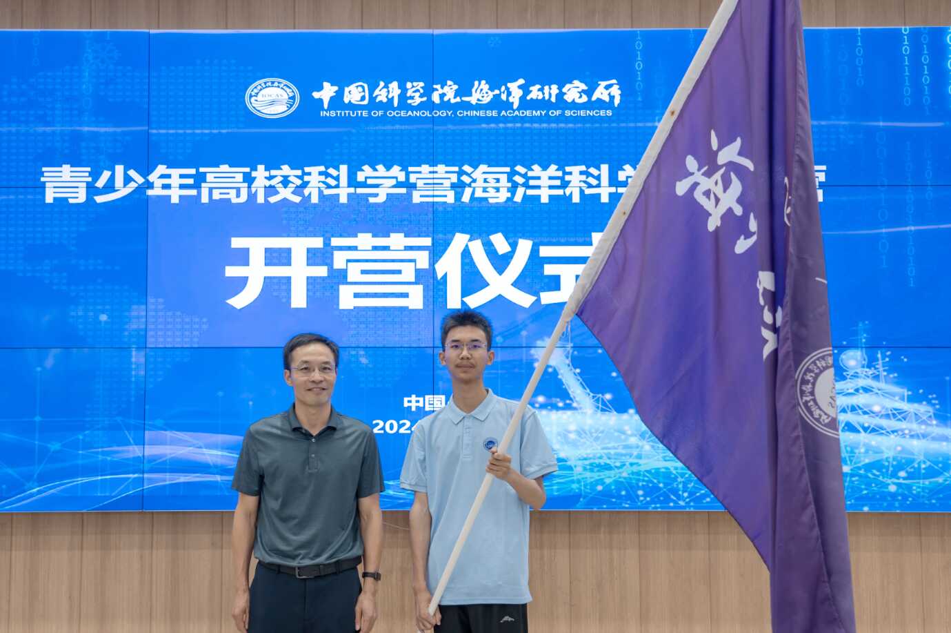 開營(yíng)儀式上,萬(wàn)世明介紹了海洋科學(xué)專題營(yíng)的辦營(yíng)歷史及特色,并為營(yíng)員代表授旗。他鼓勵(lì)營(yíng)員們?cè)诨顒?dòng)中多交流、多實(shí)踐、多思考、多研判,努力培養(yǎng)善于觀察的能力、敢于行動(dòng)的魄力和持之以恒的精神,并期待同學(xué)們?cè)诓贿h(yuǎn)的將來(lái)能夠加入海洋科技創(chuàng)新隊(duì)伍中,為海洋強(qiáng)國(guó)建設(shè)做出貢獻(xiàn)。