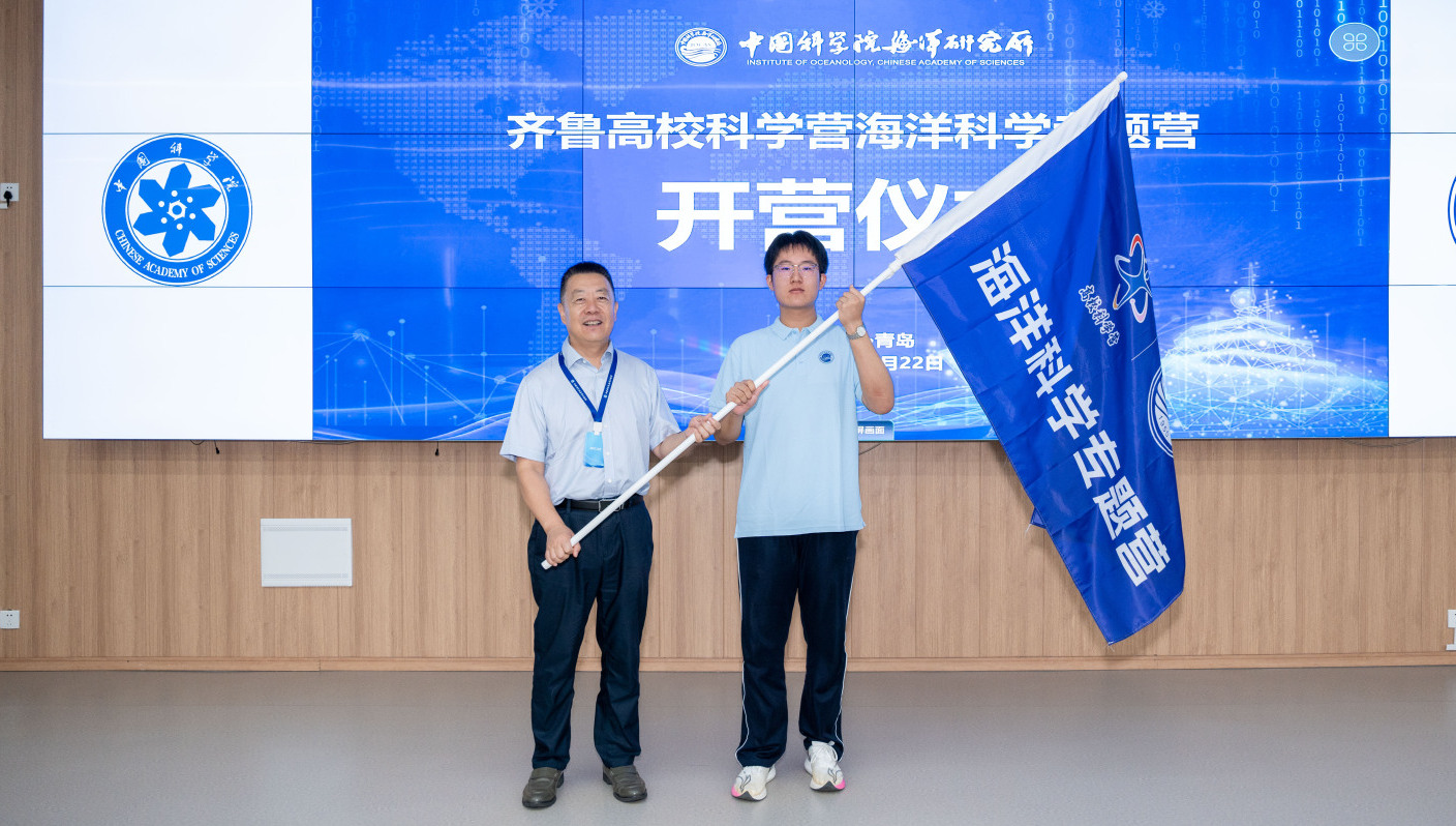 開營儀式上,畢偉代表承辦單位介紹了海洋科學(xué)專題營的辦營歷史及特色,并為營員代表授旗。他鼓勵營員們在本次科學(xué)營活動中多交流、多實踐、多思考,努力培養(yǎng)善于觀察的能力、敢于行動的魄力和持之以恒的精神,在活動中學(xué)習(xí)科學(xué)知識,在實踐中感悟海洋魅力,并期待營員們未來加入海洋科技創(chuàng)新的隊伍。